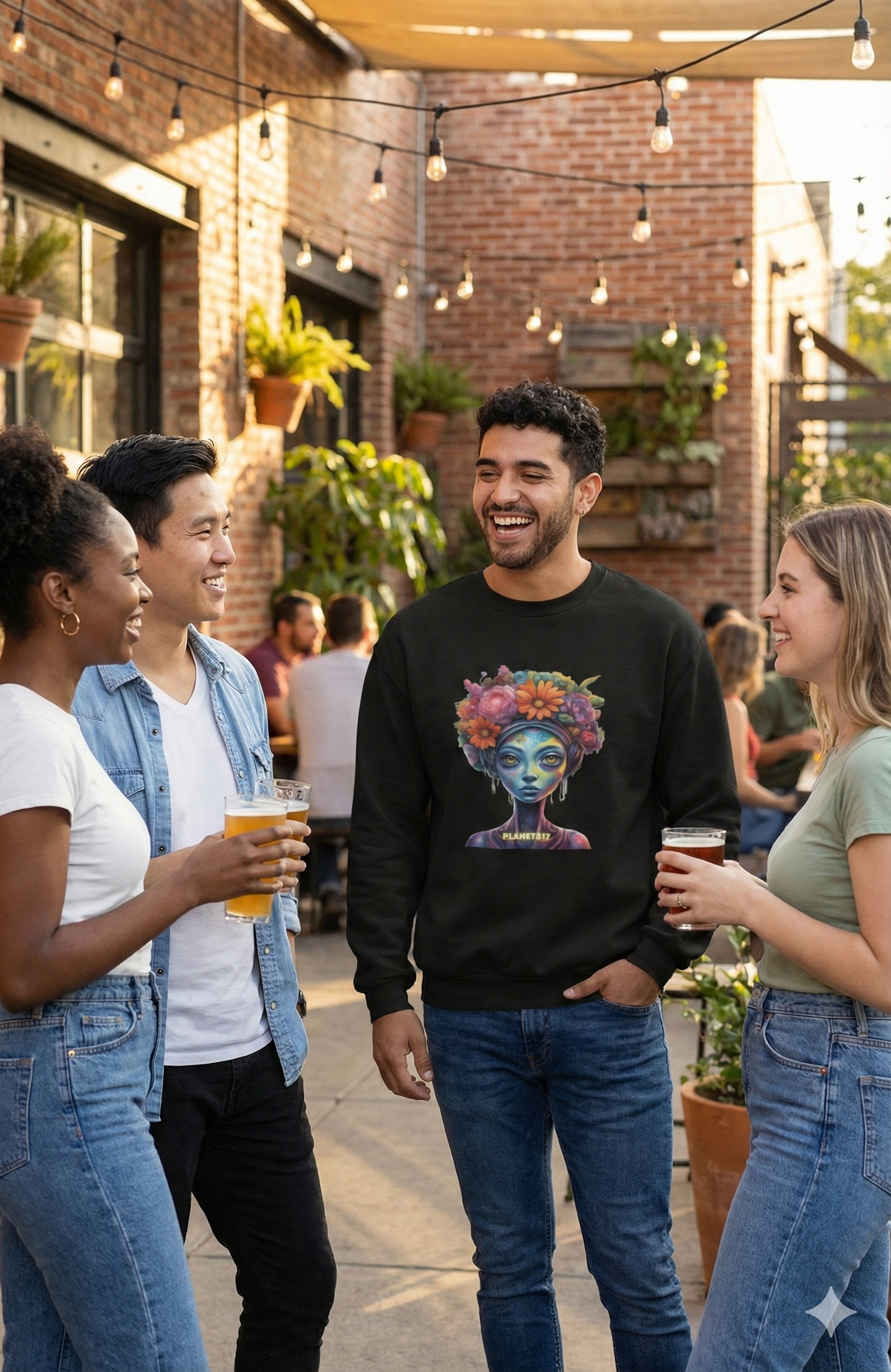Meet the AstraFlora, a serene cosmic guide whose wisdom flows through petals, energy, and celestial calm. She is the quiet force of Planet517 — radiant, intuitive, and deeply connected to the botanical realms of the cosmos. Now, her ethereal presence comes to life in stunning detail on our Classic Planet517 Crewneck Sweatshirt.